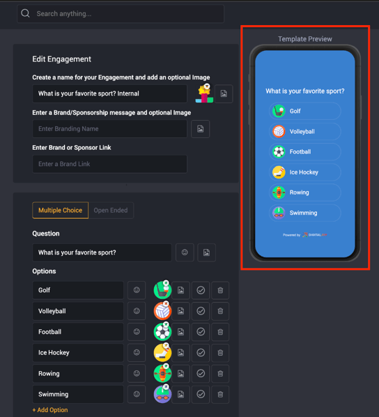 Your selection will instantly appear in the engagement preview.