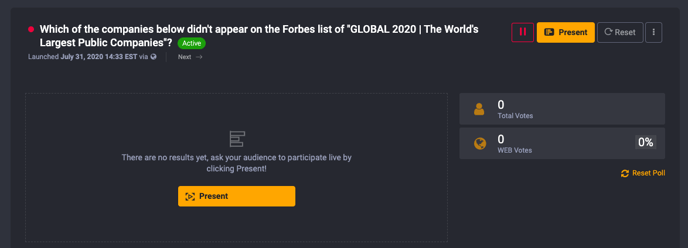 Watch the video here to see how to display and share the live results of your engagement while in Presentation Mode.